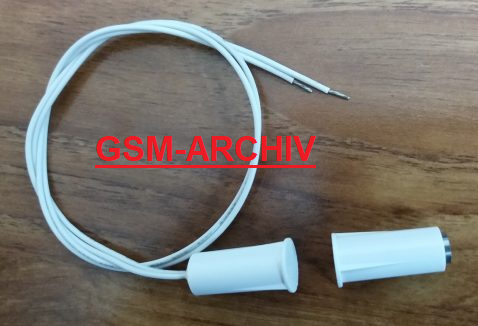 - magnetický rozpínací kontakt pro připevnění na okna nebo dveře. Výhodou tohoto provedení je, že kontakty nejsou při zavřeném okně vůbec vidět a při otevřeném okně je vidět jen bílý terčík o průměru 10mm.
