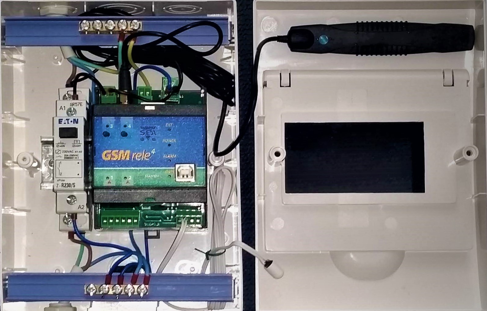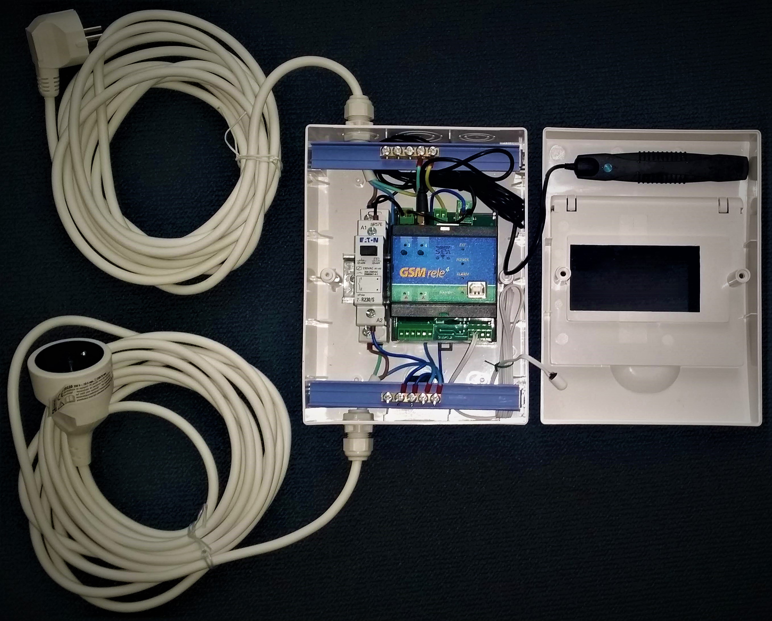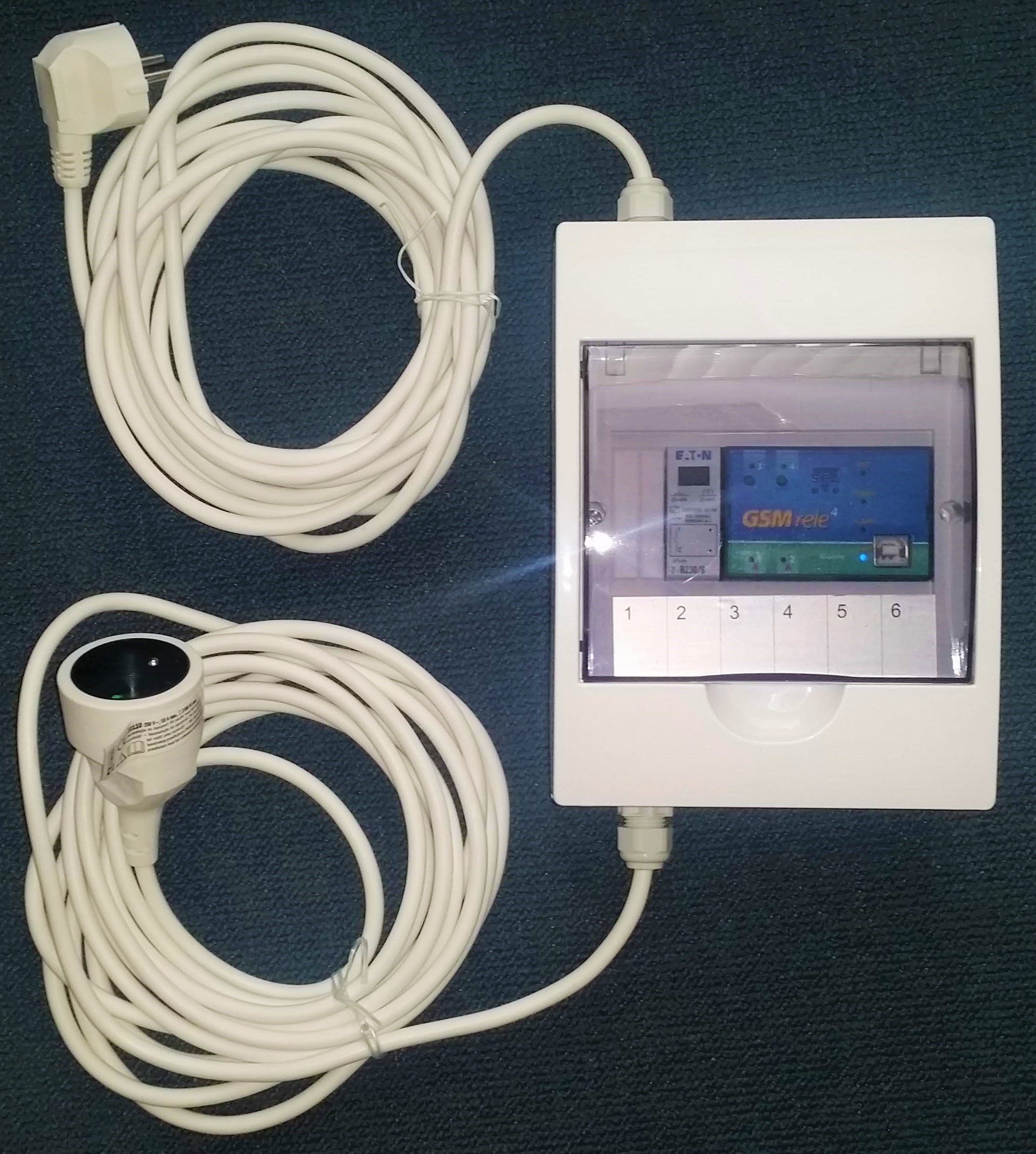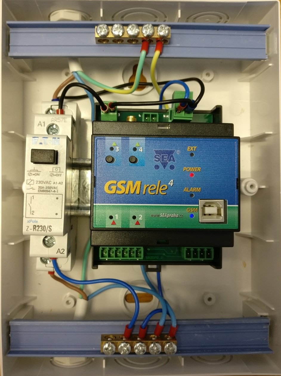 BOX na stůl nebo na zeď včetně GSM aplikace GSM-R5-DIN a stykačem GSM-RELE-OUT4