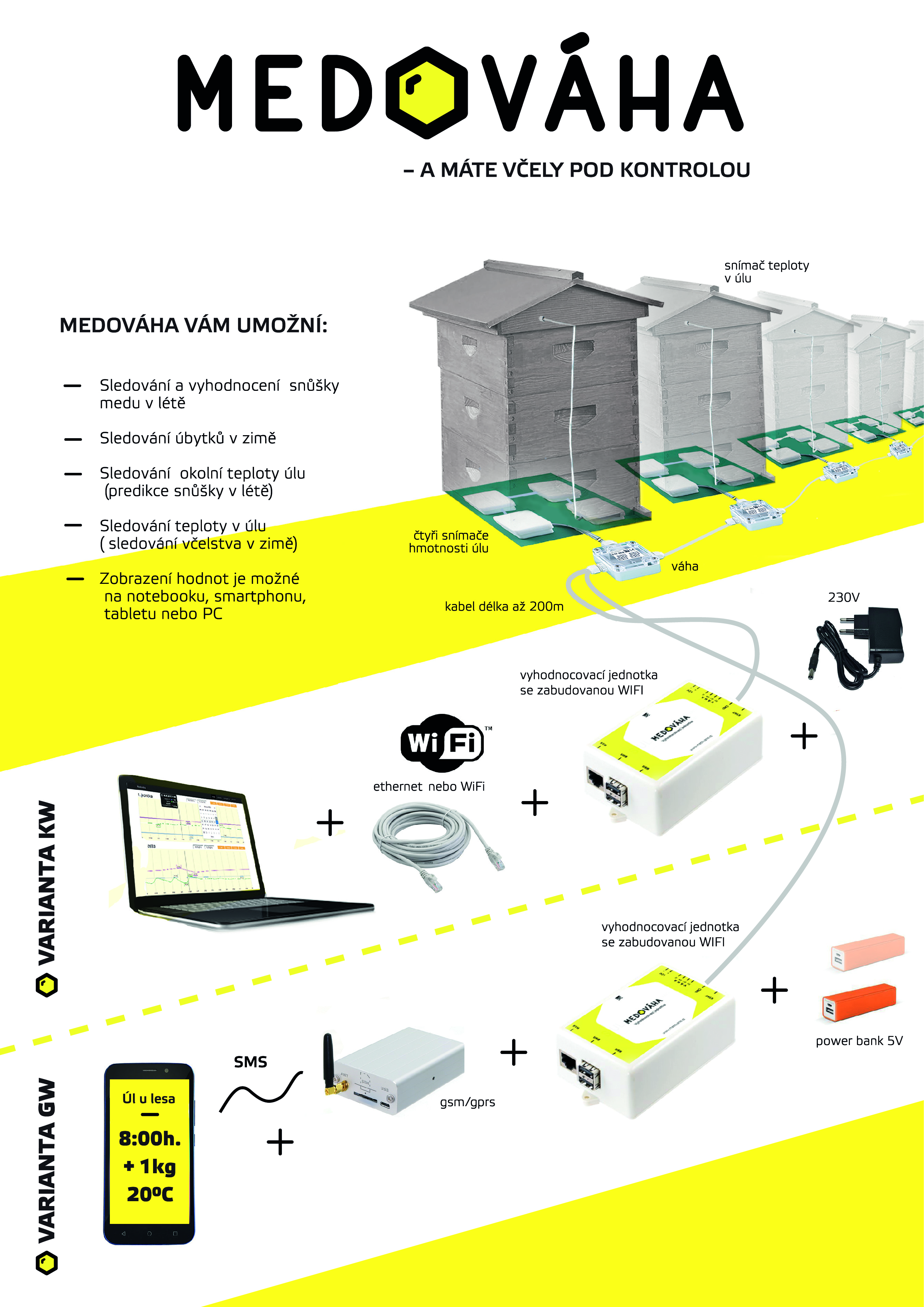 Medováha je vlastně váha úlu neboli úlová váha. Je to zařízení, které umožňuje vzdálené sledování a vyhodnocování snůšky medu až v 32 úlech, soustředěných v jedné oblasti. Informace o denním přírůstku váhy jednotlivých úlů lze sledovat přes Internet, například pomocí mobilního telefonu, tabletu nebo z notebooku. Zařízení umožňuje zjistit denní přírůstky hmotnosti jednotlivých úlů, a to formou rozdílů z „půlnočních“ měření, kdy jsou včely v úlech. Zařízení dále umožňuje měřit průměrnou teplotu za nastavené období v rámci jednoho kalendářního dne. Při měření teploty se předpokládá měření teploty okolního prostředí v letním období a uvnitř úlu v zimním období. Pro sledování dat bez připojení se data přesunou do PC, kde je možné pomocí programu MEDOBROWSER tato data sledovat.